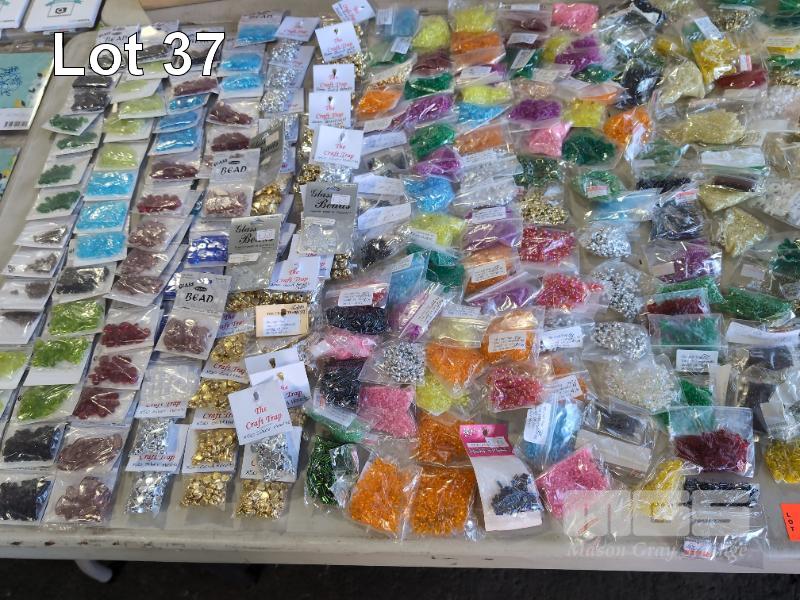 450 (APPROX) X RETAIL PACKS OF ASSORTED CRAFT BEADS. 1 X TABLE.