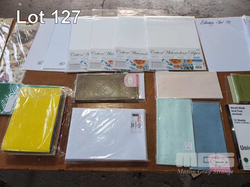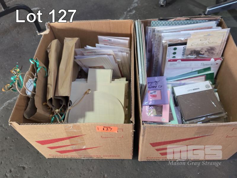 ASSORTED INCOMPLETE CRAFT PROJECTS AND SPECIALITY PAPERSCARDS, ENVELOPES ETC. 2 X BOXES.