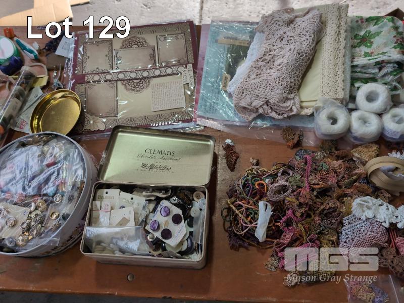 ASSORTED NEEDLE & THREADS & ASSORTED SEWING PRODUCTS INCLUDING FABRICS, LACE, BUTTONS ETC. 1 X BOX.
