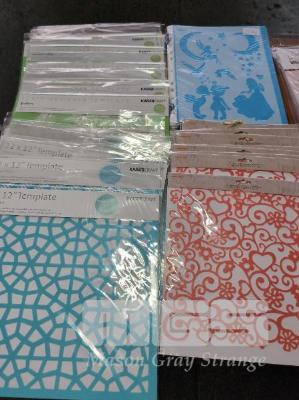 ASSORTED STENCIL TEMPLATES, SCRAPBOOKING REFILLS & BINDERS, STICKER FOLDERS ETC. 2 X BOXES.