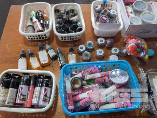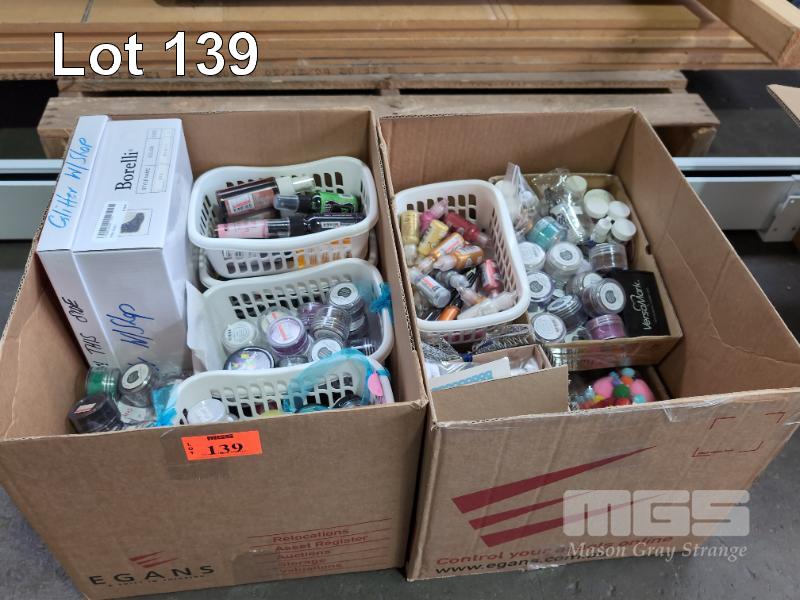 GLITTER KIT, METALLIC PAINTS, FABRIC PAINTS, ANTIQUING INKS ETC.2 X BOXES.