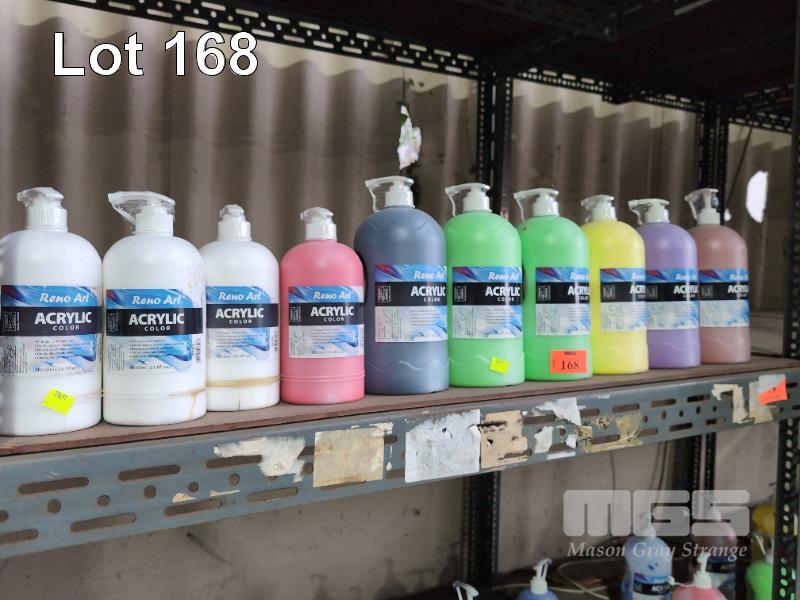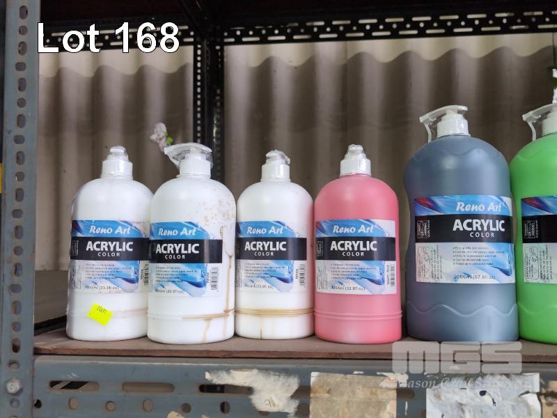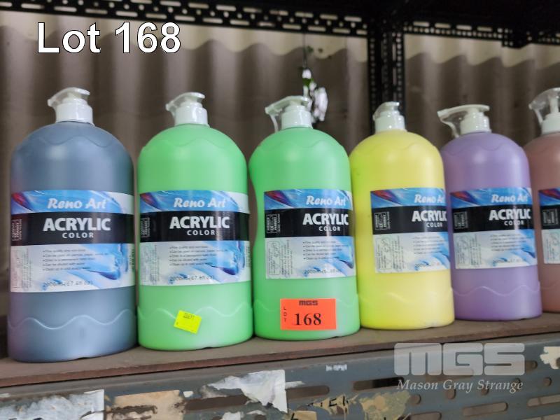 10 X RENO ART ACRYLIC PAINT. ASSORTED COLOURS. 6 @ 2.0 LITRE. 4 @ 1.0 LITRE.