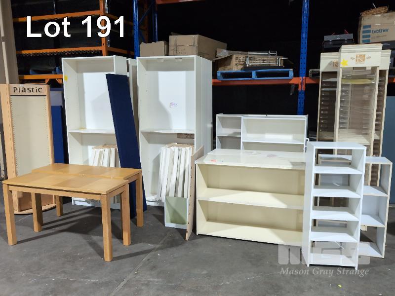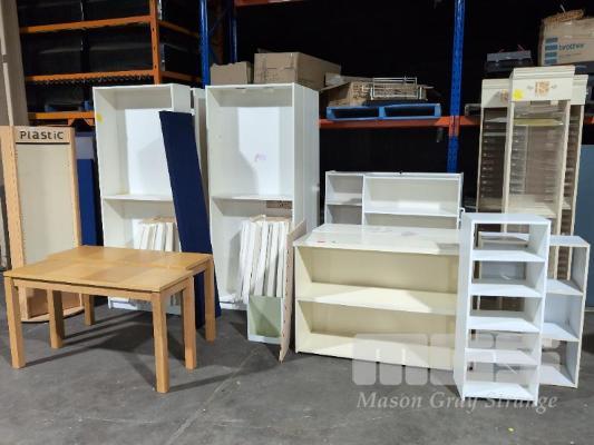 15 X RETAIL SHELVING UNITS. 2 X SIDE TABLES.