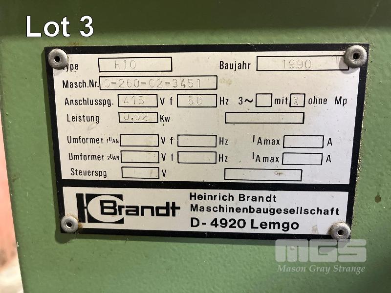 EDGE TRIMMING MACHINE, BRANDT MOD: F10 EK11 DOM: 1990 WITH END TRIM SAW, 0.37KW ELECTRIC MOTOR, 415V