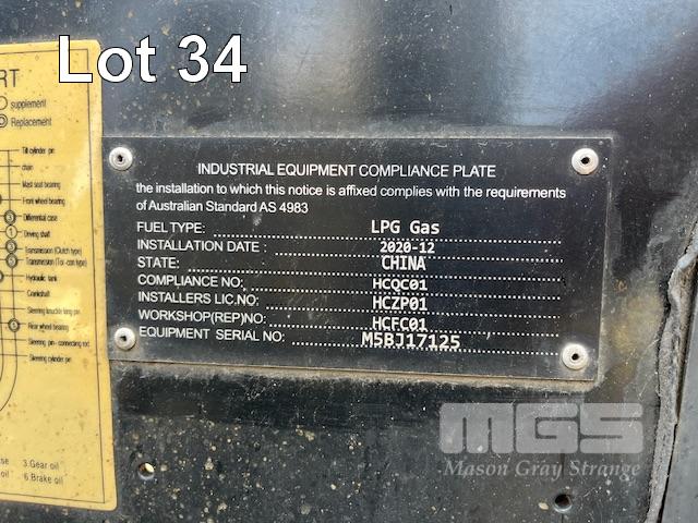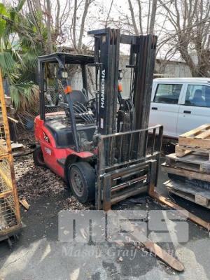 FORKLIFT, LPG, HANGCH MOD: CPOYD25-XRW22F S/NO: M5BJ17125 DOM: 12/2020 3 STAGE CONTAINER MAST SIDE SHIFT,BLADE POSITION ALL FAULTS
