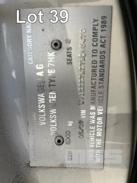 2007 VW LWB SERIES T5 TRANSPORTER VAN REG: S259 AJY VIN: WV1ZZZ7H085470 ODO: 236691 MANUAL TRANSMISSION, CARGO BARRIER, TOW BAR, 2.5 DTFI SIDE ACCESS (WITH 1 KEY/S, WITH OWNER'S MANUAL)