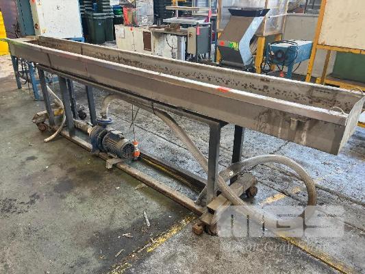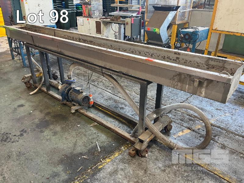 STAINLESS STEEL CHEMICAL TROUGH, 3600 x 300mm & CIRCULATING PUMP, 415V, MOBILE