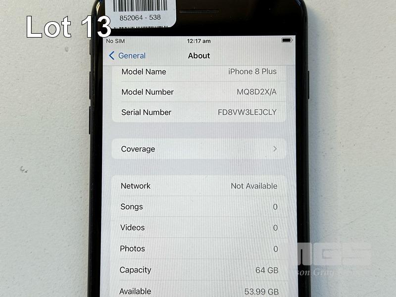 APPLE iPHONE 8 PLUS, 64GB, SPACE GREY, MODEL MQ8D2X/A, BATTERY HEALTH 84% (NO CABLE, NO CHARGER) S/N:FD8VW3LEJCLY