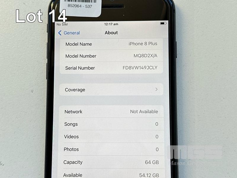 APPLE iPHONE 8 PLUS, 64GB, SPACE GREY, MODEL MQ8D2X/A, BATTERY HEALTH 82% (NO CABLE, NO CHARGER) S/N:FD8VW149JCLY