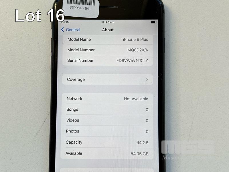 APPLE iPHONE 8 PLUS, 64GB, SPACE GREY, MODEL MQ8D2X/A, BATTERY HEALTH 85% (NO CABLE, NO CHARGER) (NOTE: DAMAGE BOTTOM LEFT CORNER) S/N:FD8VW69NJCLY