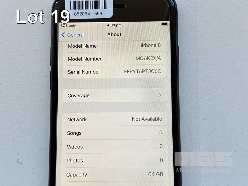 APPLE iPHONE 8, 64GB, SPACE GREY, MODEL MQ6K2X/A, BATTERY HEALTH 100% (NO CABLE, NO CHARGER) S/N:FFPYT6PTJC6C