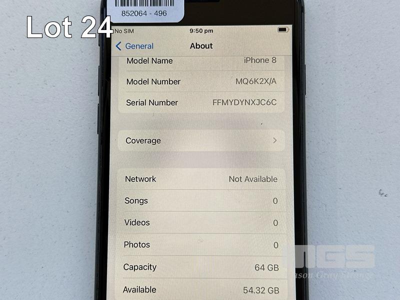 APPLE iPHONE 8, 64GB, SPACE GREY, MODEL MQ6K2X/A, BATTERY HEALTH 96% (NO CABLE, NO CHARGER) S/N:FFMYDYNXJC6C