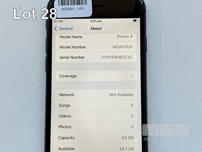 APPLE iPHONE 8, 64GB, SPACE GREY, MODEL MQ6K2X/A, BATTERY HEALTH 95% (NO CABLE, NO CHARGER) S/N:FFNYDBH8JC6C