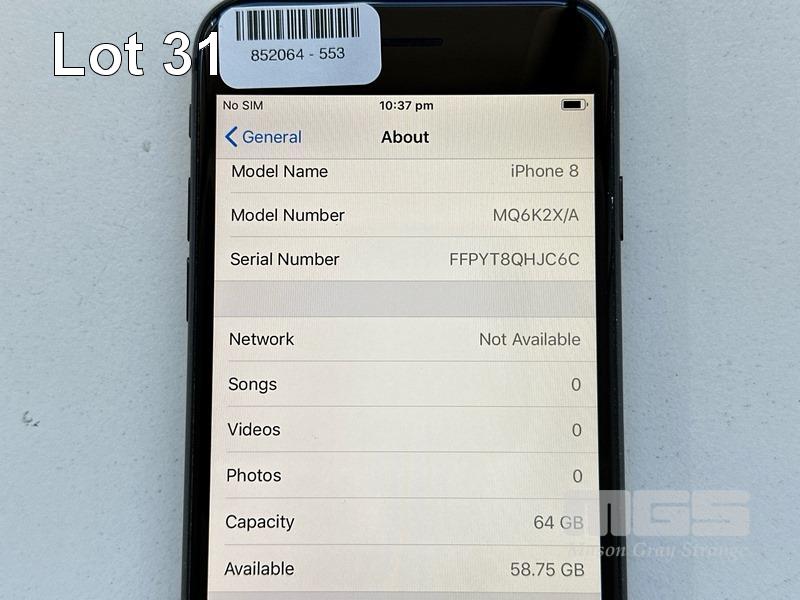 APPLE iPHONE 8, 64GB, SPACE GREY, MODEL MQ6K2X/A, BATTERY HEALTH 94% (NO CABLE, NO CHARGER) S/N:FFPYT8QHJC6C