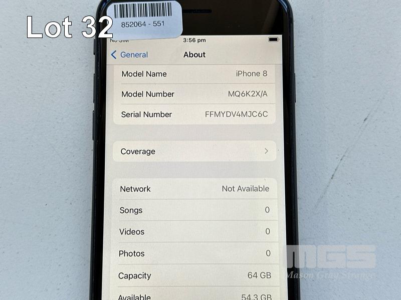 APPLE iPHONE 8, 64GB, SPACE GREY, MODEL MQ6K2X/A, BATTERY HEALTH 94% (NO CABLE, NO CHARGER) S/N:FFMYDV4MJC6C