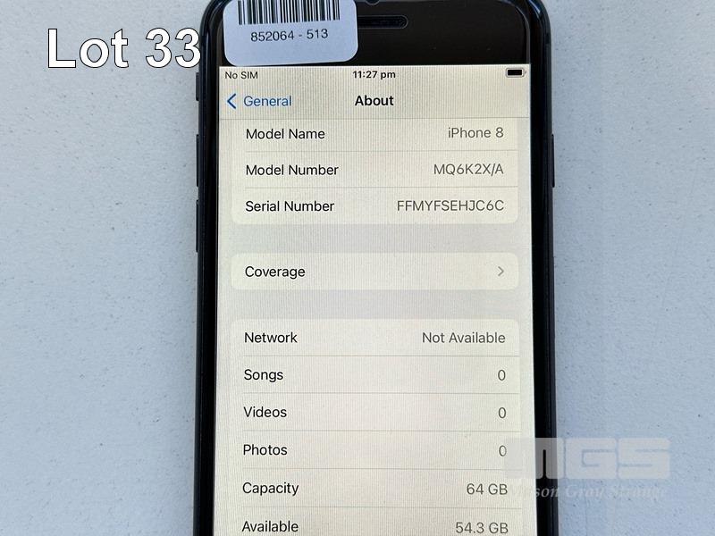 APPLE iPHONE 8, 64GB, SPACE GREY, MODEL MQ6K2X/A, BATTERY HEALTH 94% (NO CABLE, NO CHARGER) S/N:FFMYFSEHJC6C