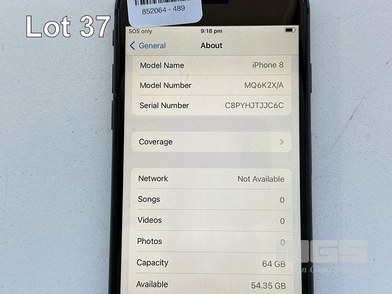 APPLE iPHONE 8, 64GB, SPACE GREY, MODEL MQ6K2X/A, BATTERY HEALTH 93% (NO CABLE, NO CHARGER) S/N:C8PYHJTJJC6C