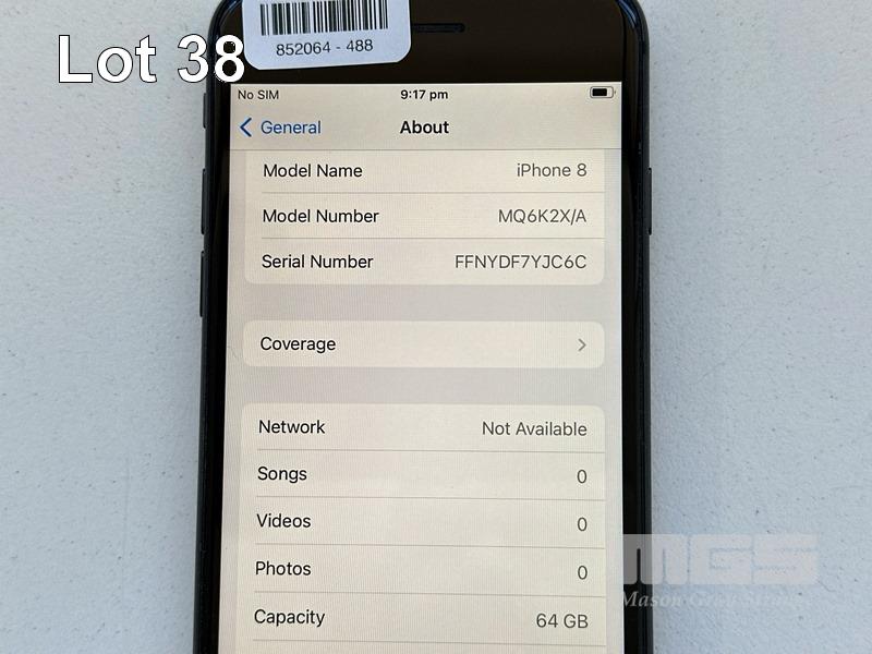 APPLE iPHONE 8, 64GB, SPACE GREY, MODEL MQ6K2X/A, BATTERY HEALTH 93% (NO CABLE, NO CHARGER) S/N:FFNYDF7YJC6C