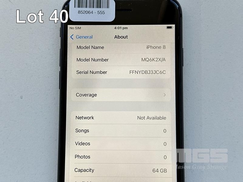 APPLE iPHONE 8, 64GB, SPACE GREY, MODEL MQ6K2X/A, BATTERY HEALTH 92% (NO CABLE, NO CHARGER) S/N:FFNYDBJ3JC6C