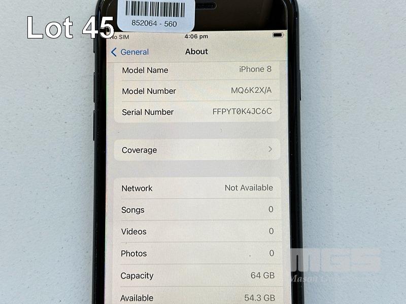 APPLE iPHONE 8, 64GB, SPACE GREY, MODEL MQ6K2X/A, BATTERY HEALTH 91% (NO CABLE, NO CHARGER) S/N:FFPYT0K4JC6C