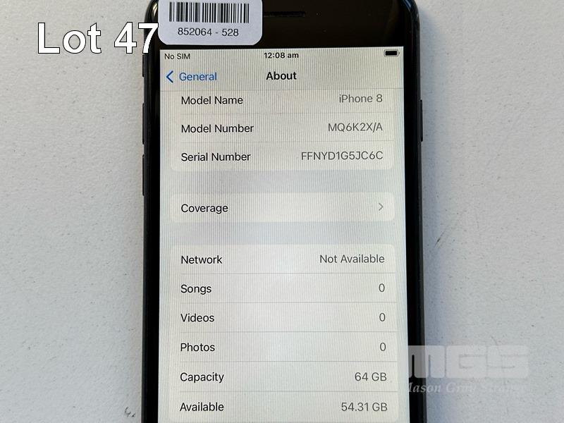 APPLE iPHONE 8, 64GB, SPACE GREY, MODEL MQ6K2X/A, BATTERY HEALTH 91% (NO CABLE, NO CHARGER) S/N:FFNYD1G5JC6C