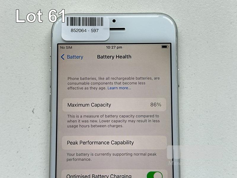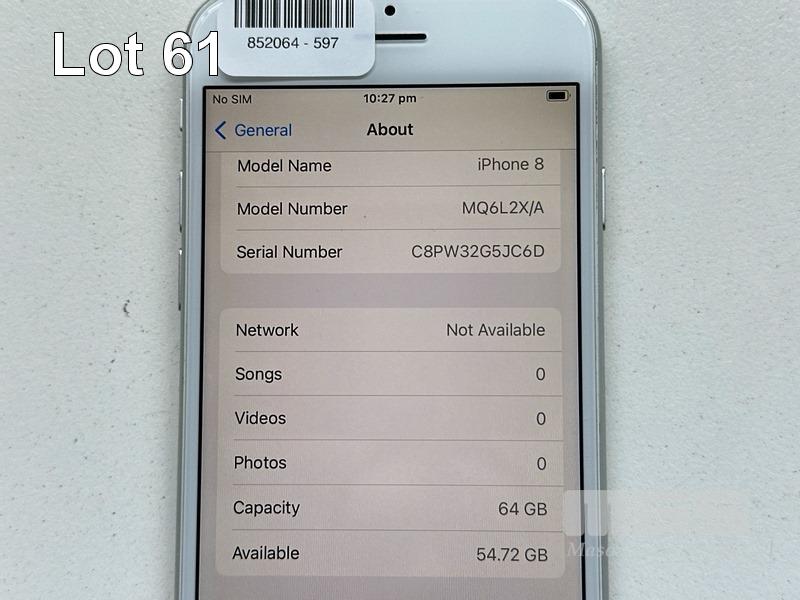 APPLE iPHONE 8, 64GB, SILVER, MODEL MQ6L2X/A, BATTERY HEALTH 86% (NO CABLE, NO CHARGER) S/N:C8PW32G5JC6D