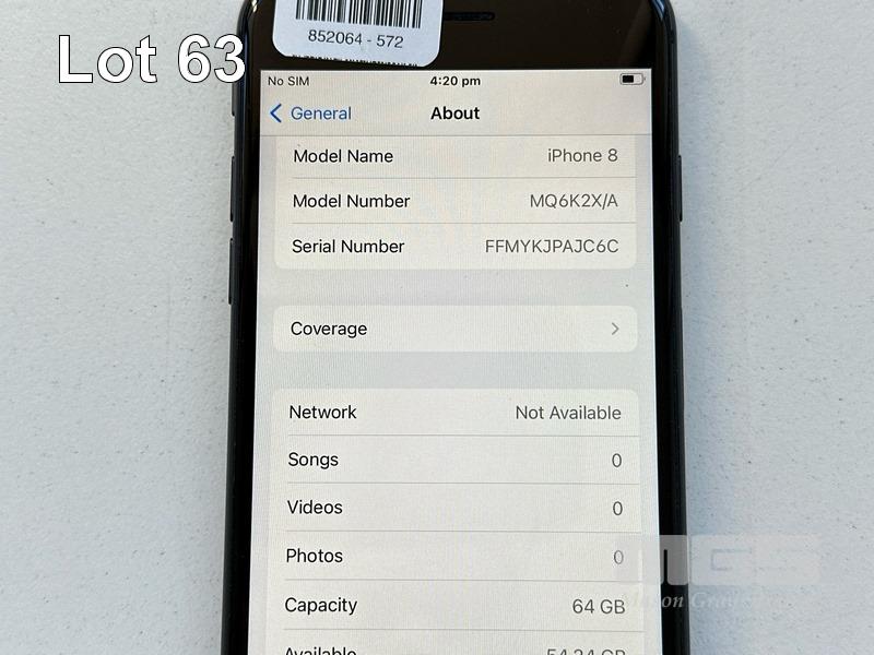 APPLE iPHONE 8, 64GB, SPACE GREY, MODEL MQ6K2X/A, BATTERY HEALTH 90% (NO CABLE, NO CHARGER) S/N:FFMYKJPAJC6C