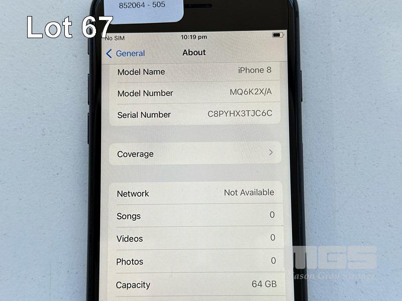 APPLE iPHONE 8, 64GB, SPACE GREY, MODEL MQ6K2X/A, BATTERY HEALTH 90% (NO CABLE, NO CHARGER) S/N:C8PYHX3TJC6C