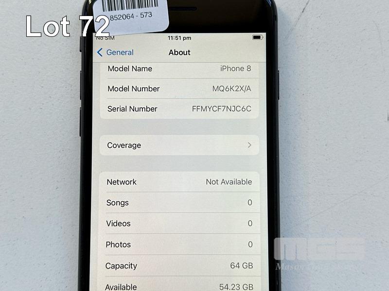 APPLE iPHONE 8, 64GB, SPACE GREY, MODEL MQ6K2X/A, BATTERY HEALTH 89% (NO CABLE, NO CHARGER) S/N:FFMYCF7NJC6C