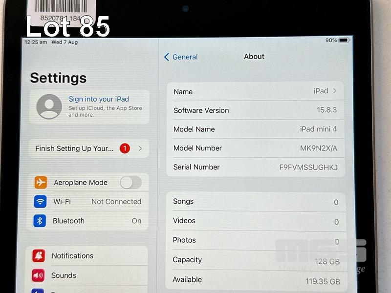 APPLE iPAD MINI 4TH GEN, 128GB, Wi-Fi, SPACE GREY, MODEL MK9N2X/A, A1538 WITH COVER (NO CABLE, NO CHARGER) S/N:F9FVMSSUGHKJ