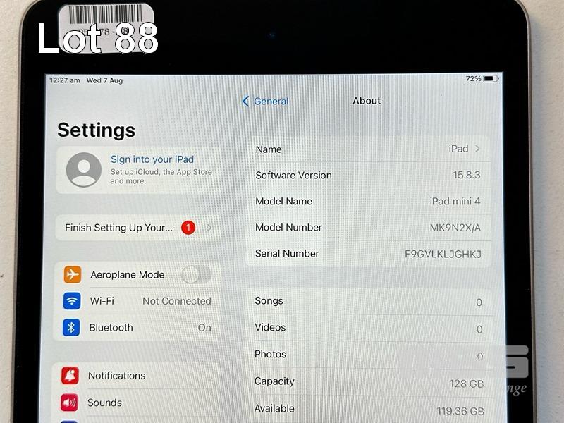 APPLE iPAD MINI 4TH GEN, 128GB, Wi-Fi, SPACE GREY, MODEL MK9N2X/A, A1538 WITH COVER (NO CABLE, NO CHARGER) S/N:F9GVLKLJGHKJ