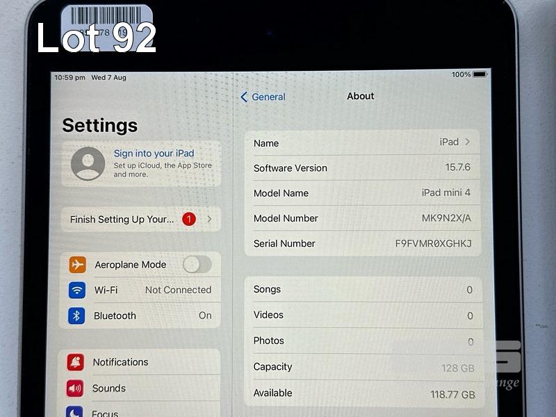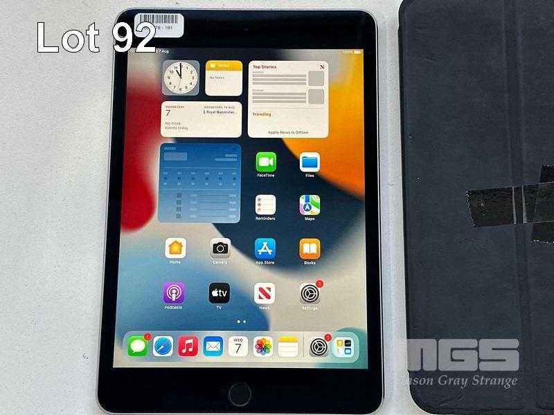 APPLE iPAD MINI 4TH GEN, 128GB, Wi-Fi, SPACE GREY, MODEL MK9N2X/A, A1538 WITH COVER (NO CABLE, NO CHARGER) S/N:F9FVMR0XGHKJ
