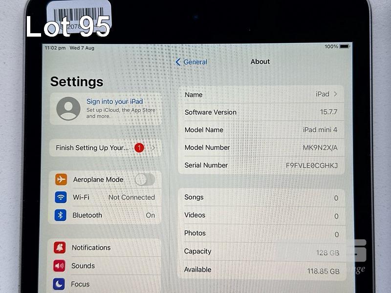 APPLE iPAD MINI 4TH GEN, 128GB, Wi-Fi, SPACE GREY, MODEL MK9N2X/A, A1538 WITH COVER (NO CABLE, NO CHARGER) S/N:F9FVLE0CGHKJ