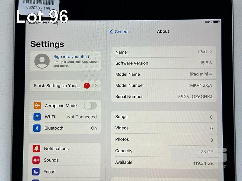 APPLE iPAD MINI 4TH GEN, 128GB, Wi-Fi, SPACE GREY, MODEL MK9N2X/A, A1538 WITH COVER (NO CABLE, NO CHARGER) S/N:F9GVLGZ6GHKJ