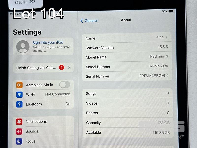 APPLE iPAD MINI 4TH GEN, 128GB, Wi-Fi, SPACE GREY, MODEL MK9N2X/A, A1538 WITH COVER (NO CABLE, NO CHARGER) S/N:F9FVM49BGHKJ