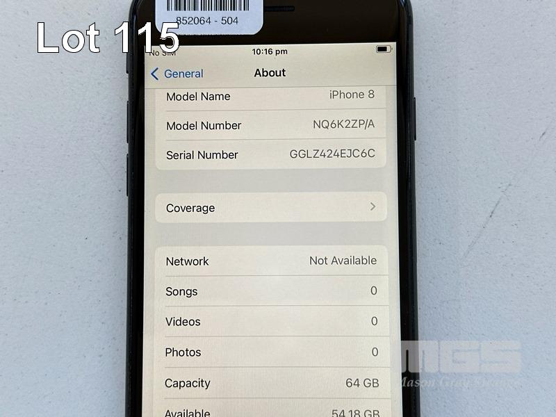 APPLE iPHONE 8, 64GB, SPACE GREY, MODEL MQ6K2X/A, BATTERY HEALTH 88% (NO CABLE, NO CHARGER) S/N:GGLZ424EJC6C