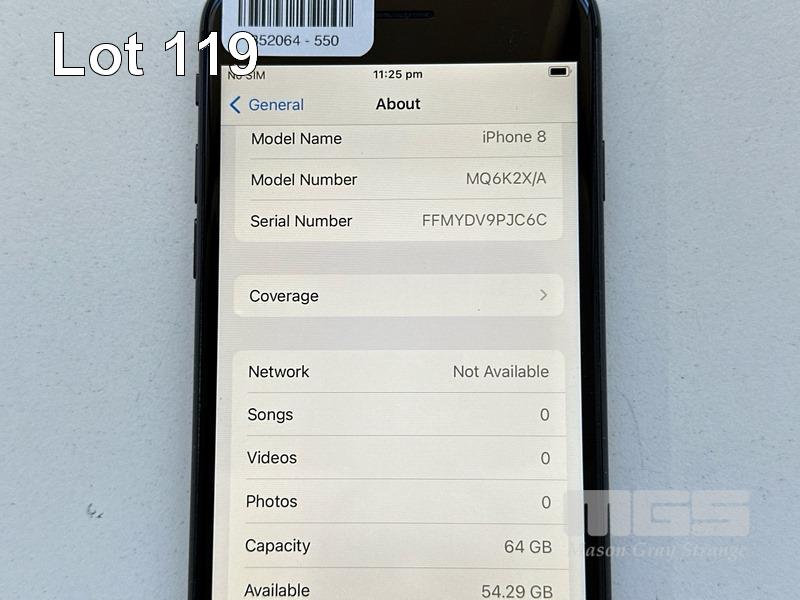 APPLE iPHONE 8, 64GB, SPACE GREY, MODEL MQ6K2X/A, BATTERY HEALTH 87% (NO CABLE, NO CHARGER) S/N:FFMYDV9PJC6C