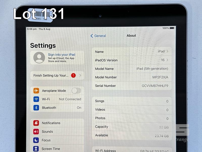 APPLE iPAD 5TH GEN, 32GB, Wi-Fi, SPACE GREY, MODEL MP2F2X/A, A1822 (NO CABLE, NO CHARGER) S/N:GCVVM87HHLF9