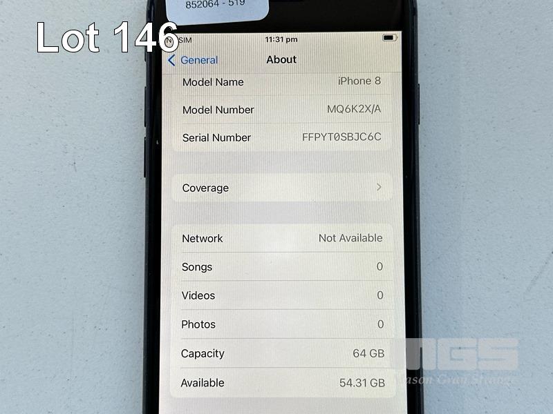 APPLE iPHONE 8, 64GB, SPACE GREY, MODEL MQ6K2X/A, BATTERY HEALTH 86% (NO CABLE, NO CHARGER) S/N:FFPYT0SBJC6C