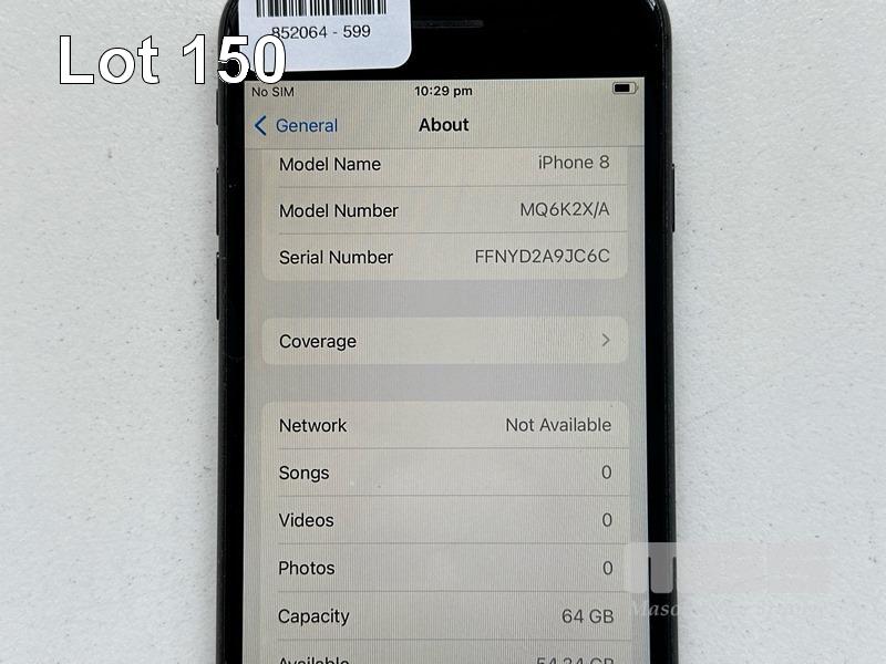 APPLE iPHONE 8, 64GB, SPACE GREY, MODEL MQ6K2X/A, BATTERY HEALTH 86% (NO CABLE, NO CHARGER) S/N:FFNYD2A9JC6C