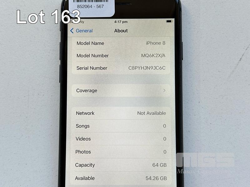 APPLE iPHONE 8, 64GB, SPACE GREY, MODEL MQ6K2X/A, BATTERY HEALTH 85% (NO CABLE, NO CHARGER) S/N:C8PYHJN9JC6C