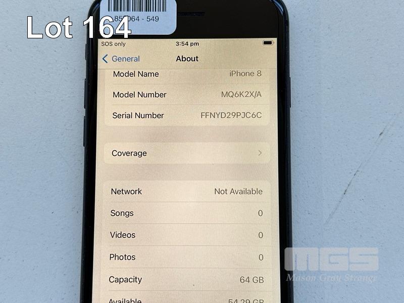 APPLE iPHONE 8, 64GB, SPACE GREY, MODEL MQ6K2X/A, BATTERY HEALTH 85% (NO CABLE, NO CHARGER) S/N:FFNYD29PJC6C