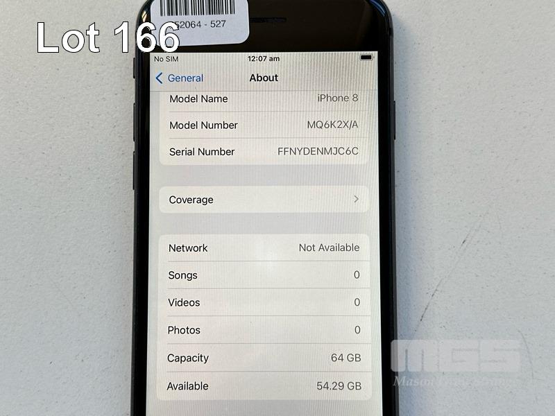 APPLE iPHONE 8, 64GB, SPACE GREY, MODEL MQ6K2X/A, BATTERY HEALTH 85% (NO CABLE, NO CHARGER) S/N:FFNYDENMJC6C