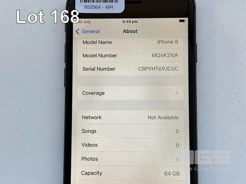APPLE iPHONE 8, 64GB, SPACE GREY, MODEL MQ6K2X/A, BATTERY HEALTH 85% (NO CABLE, NO CHARGER) S/N:C8PYHT69JC6C
