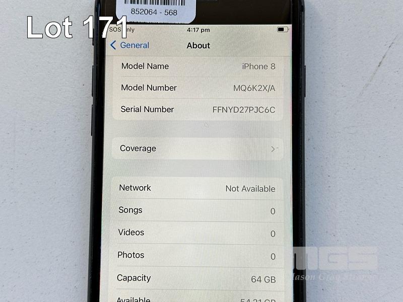 APPLE iPHONE 8, 64GB, SPACE GREY, MODEL MQ6K2X/A, BATTERY HEALTH 84% (NO CABLE, NO CHARGER) S/N:FFNYD27PJC6C