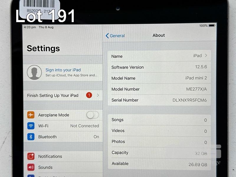 APPLE iPAD MINI 2, 32GB, Wi-Fi, SPACE GREY, MODEL ME277X/A, A1489 (NO CABLE, NO CHARGER) (NOTE: MARKS ON BACK) S/N:DLXNX9R5FCM6