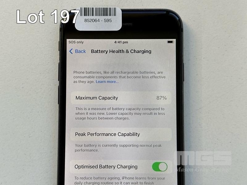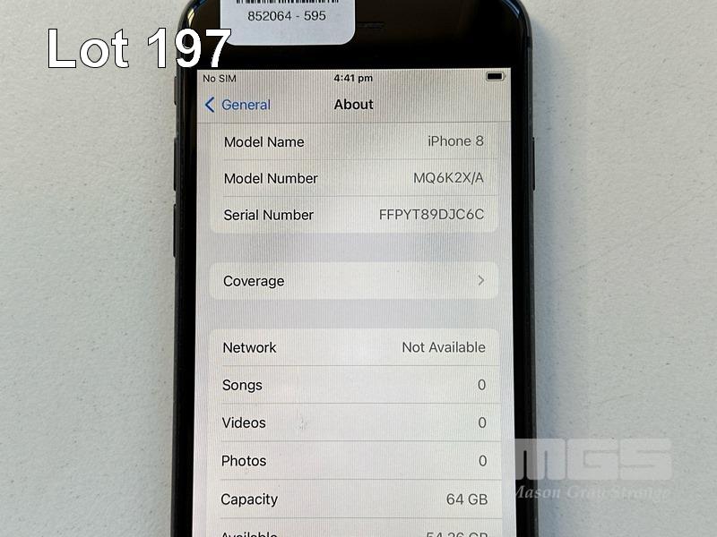 APPLE iPHONE 8, 64GB, SPACE GREY, MODEL MQ6K2X/A, BATTERY HEALTH 87% (NO CABLE, NO CHARGER) (NOTE: MINOR SCRATCHES ON SCREEN) S/N:FFPYT89DJC6C