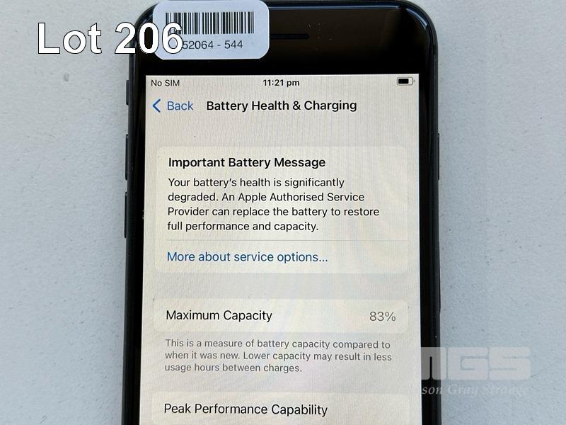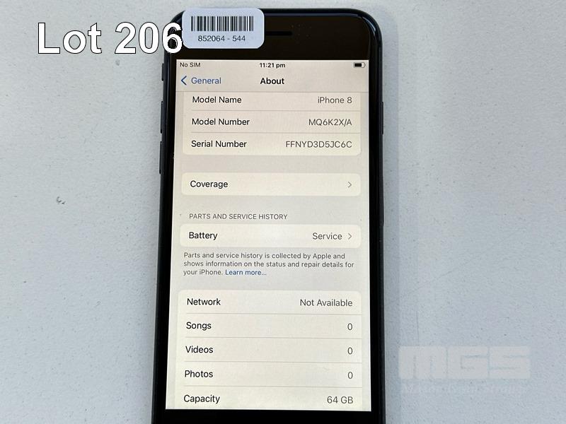 APPLE iPHONE 8, 64GB, SPACE GREY, MODEL MQ6K2X/A, BATTERY HEALTH 83% (NO CABLE, NO CHARGER) (NOTE: BATTERY SERVICE MESSAGE) S/N:FFNYD3D5JC6C