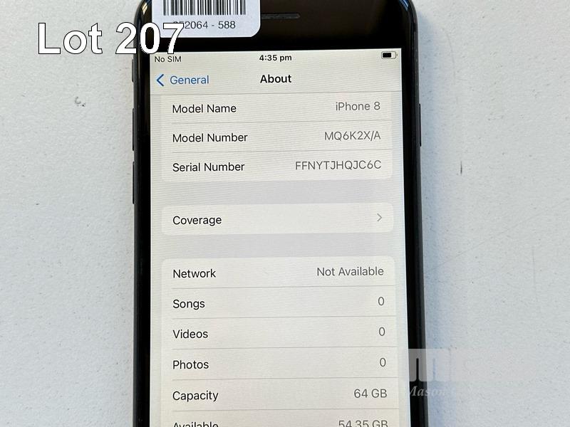 APPLE iPHONE 8, 64GB, SPACE GREY, MODEL MQ6K2X/A, BATTERY HEALTH 82% (NO CABLE, NO CHARGER) (NOTE: MINOR SCRATCHES ON SCREEN) S/N:FFNYTJHQJC6C