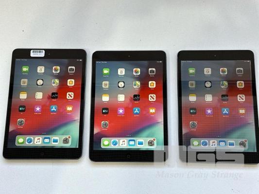 3 x APPLE iPAD MINI 2, 32GB, Wi-Fi, SPACE GREY, MODEL ME277X/A, A1489 (NO CABLES, NO CHARGERS) (NOTE: ALL VARIOUS DAMAGE) S/N:DLXNX9KQFCM6, DLXNX9SVFCM6, DLXNX5RLFCM6